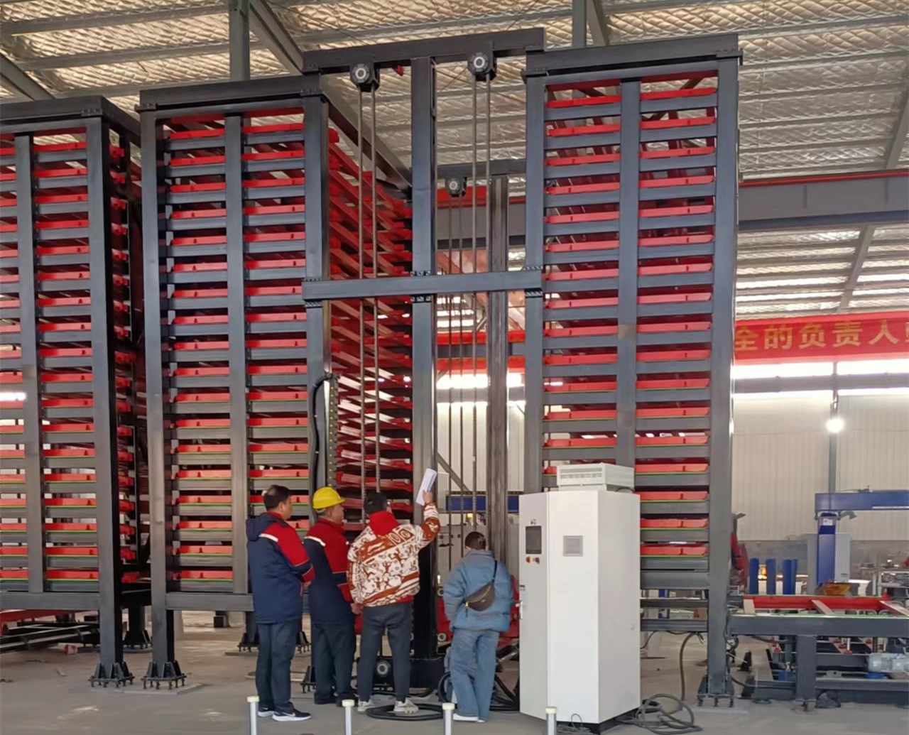 自動化鈑金倉庫雙梁桁架裝卸機激光切割機的組合,實現了倉庫鈑金的自動化裝箱。經激光切割機切割后,板材自動卸料、碼垛、再次入庫,實現無人值守生產。